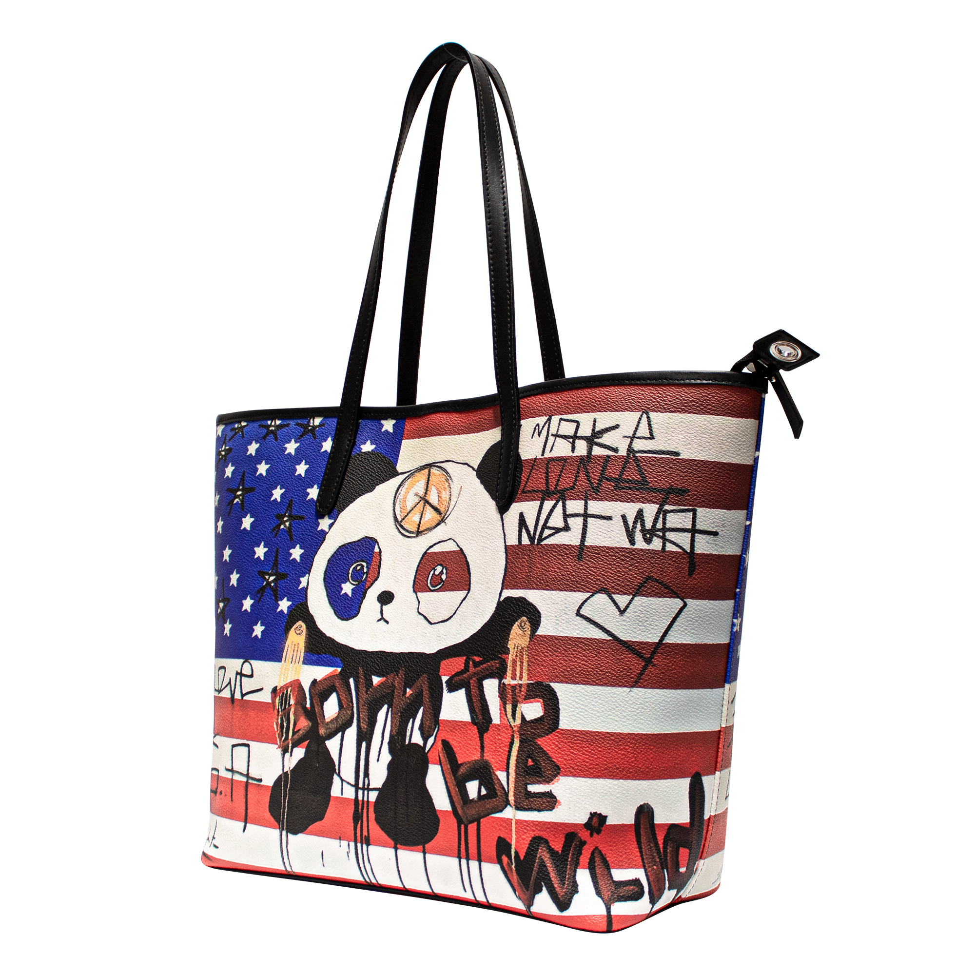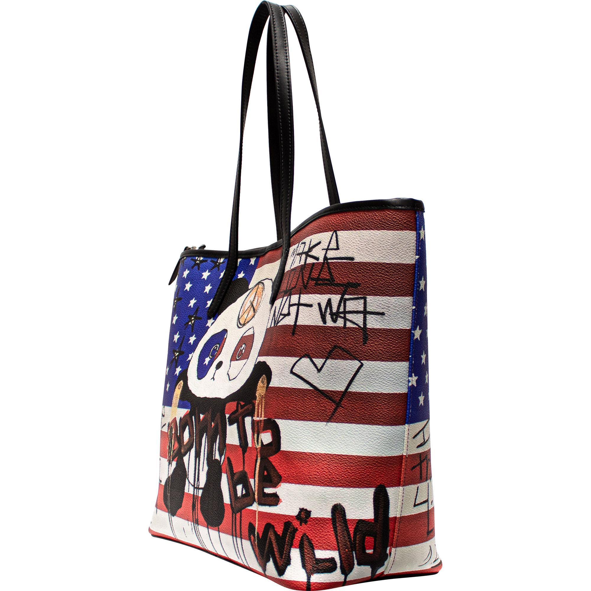 • Printed on canvas with black cowhide leather trim